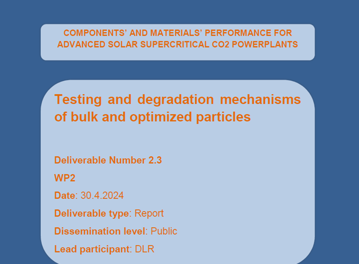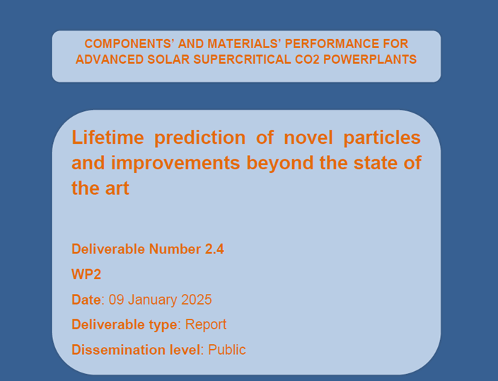 This document presents the findings on the mechanical performance and lifetime prediction of novel particles to be used in advanced solar supercritical CO₂ power plants. Through computational modeling and experimental testing, we examined phase stability, micromechanical behavior, and fracture mechanisms of particles under extreme conditions, including high temperatures and mechanical stresses in heat exchangers. Our analyses, supported by thermodynamic calculations and discrete element simulations, identified critical factors influencing particle durability, such as microstructure, shape, and phase composition. The results provide valuable insights into the design of particle materials that can withstand the demanding operational conditions of CST applications, potentially enabling more efficient, durable, and carbon-neutral energy solutions.